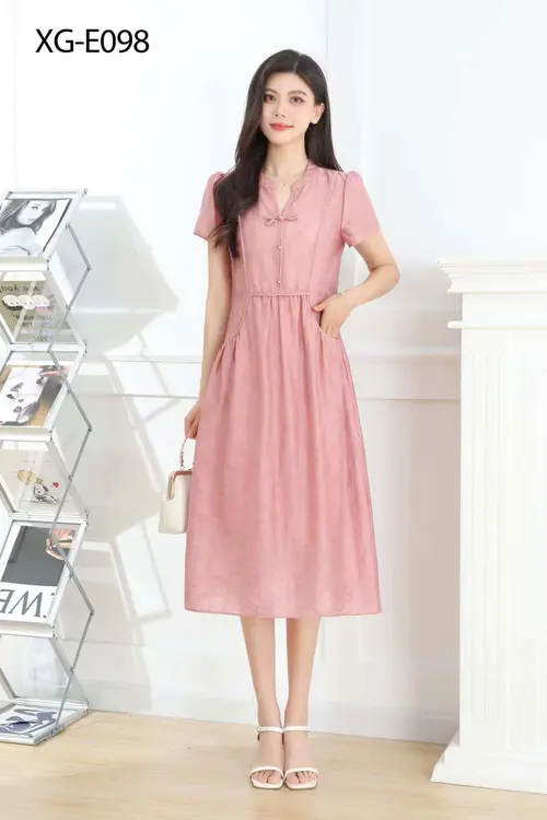 ? 清新色彩:这款中长款连衣裙以淡紫色,浅粉为主调,给人一种清新、柔和的感觉。无论是春夏还是初秋,都能穿出不一样的风采。